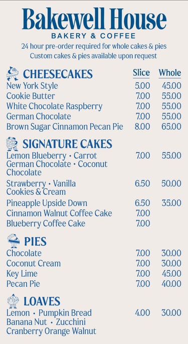 At Bakewell House, we pride ourselves on being a friendly neighborhood gem, offering a delightful range of treats and exceptional service from our dedicated team. Experience the joy of our delicious baked goods - made fresh daily.